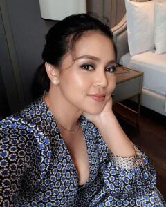 IstrIku yang bahenol saat itu mengenakan blaser kuning berleher rendah sehingga kedua payudara montoknya